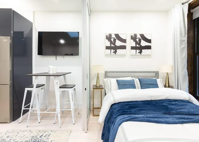 Il y a aussi une cuisine complète dans certaines unités, équipée d'un réfrigérateur et d'un four. Des équipements de cuisine tels qu'une cafetière/théière sont fournis pour offrir aux clients une expérience pratique. Servant une gamme de plats, les Salvo's et Gotham Pizza peuvent être atteints en 5 minutes à pied. La station de métro 77th Street est accessible en moins de 10 minutes à pied, ce qui permet d'accéder facilement aux différents quartiers de New York.